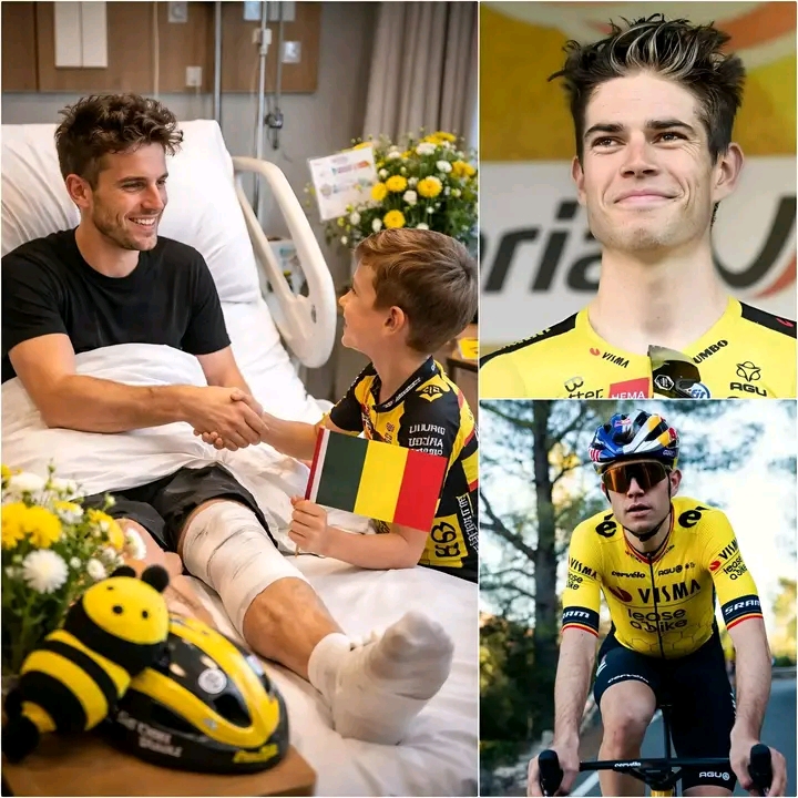 De ziekenkamer was stil, ver verwijderd van het lawaai van de kasseien, de menigte en de finishlijnen. Wout van Aert lag daar te herstellen, zijn lichaam gehavend en gekneusd na een brute tegenslag die hem van de fiets had gedwongen en in een situatie had gebracht waar geen atleet ooit wil zijn. Het was bedoeld als een privΓ©-moment – ​​een moment van rust, bezinning en herstel. Maar toen ging de deur open.