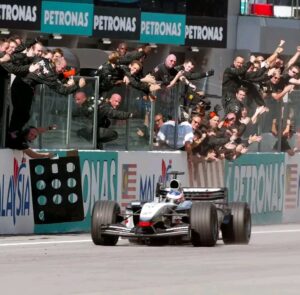 Vuonna 2003 odotukset Räikkösen ympärillä olivat jo kasvamassa, mutta harva olisi voinut ennustaa, kuinka nopeasti hän nousisi. McLarenilla ajaessaan hän osoitti ikäänsä pidempää tyyneyttä ja hallitsi vaativan Sepangin radan kovan paineen alla. Tuo kilpailu ei antanut hänelle vain ensimmäistä voittoa – se loi pohjan uralle, joka perustui johdonmukaisuuteen ja raa’aan nopeuteen.