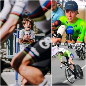 Množica se je v trenutku umirila, saj je slutila, da se bo zgodilo nekaj izjemnega. Kamere so se približale, ko je Pogačar pokleknil, se srečal s Christopherjem iz oči v oči in mu v roke položil globoko osebno darilo – predmet naravnost iz njegove lastne dirkaške opreme, prepojen s trudom in žrtvovanjem tistega dne.